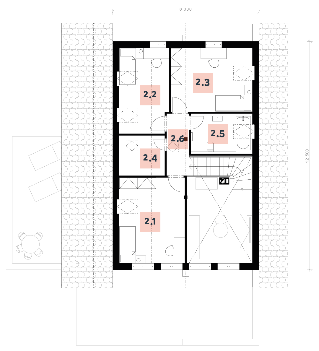 | 2.5 | Koupelna + WC: 7,02 m2 |
