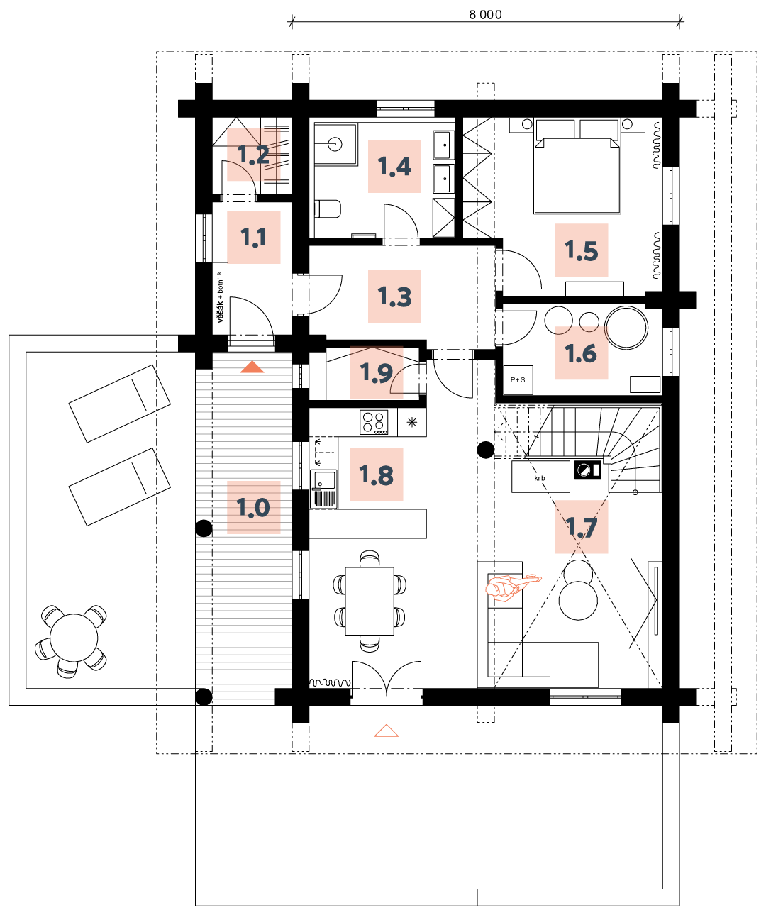 | 1.7 | Obývací pokoj + jídelna: 37,79 m2 |